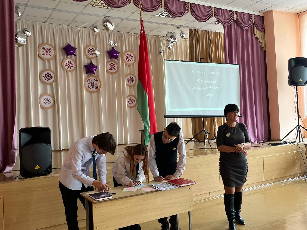 В рамках республиканской акции «Архивы — школе» в средней школе 9 прошла встреча с сотрудником Зонального государственного архива г. Жлобина Елисеевой И.Н. Ирина Николаевна рассказала учащимся 9-х классов о работе в архиве, способах поиска информации о дальних родственниках, а так же провела профориентационную беседу о возможностях трудоустройства в архиве. В завершение мероприятия учащиеся нашей школы написали свои искренние пожелания архиву!