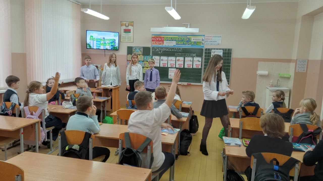 Особый акцент был во время проведения классных часов в начальной школе по принципу «Равный обучает равного». Такой подход помогает удерживать внимание младших школьников и способствует лучшему усвоению материала.