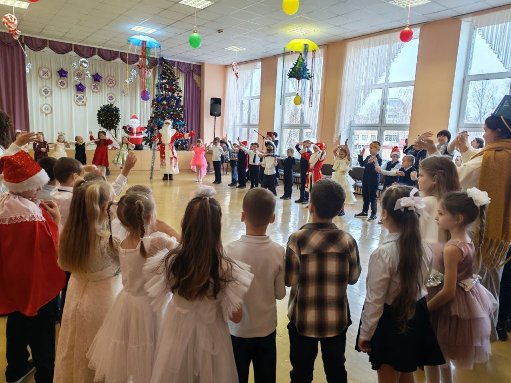 В преддверии зимних каникул прошли праздничные новогодние мероприятия. Для учеников начальных классов были организованы сказочные представления с участием Деда Мороза, Снегурочки, сказочных персонажей. Ребята погрузились в атмосферу волшебства, пели песни и водили хороводы вокруг нарядной елки.