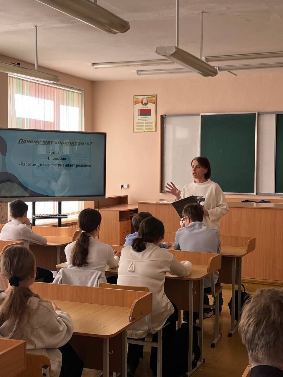 Марина Владимировна в живом диалоге обсудила с учениками, почему грубые слова так легко «прилипают» к речи в современном мире, и главное — как можно научиться контролировать свою речь, начиная с себя.