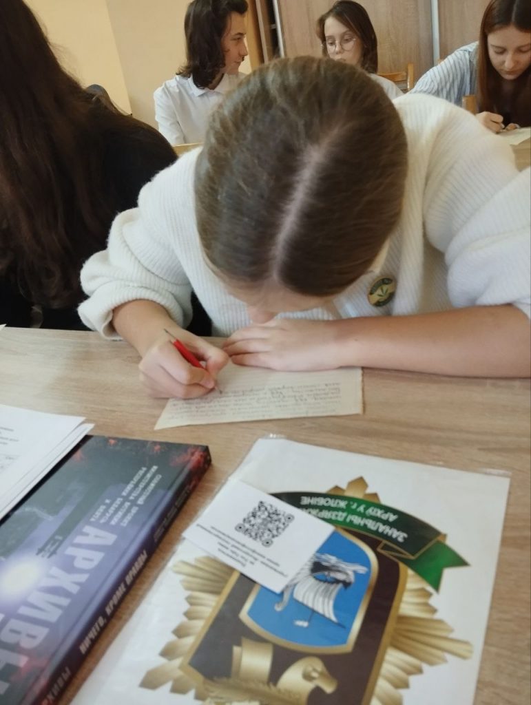 Государственный зональный архив в г. Жлобине радушно принял учащихся 9 класса. В ходе встречи для ребят был проведен мастер-класс по изготовлению солдатского конверта, а также освещена тема использования современных технологий в архивном деле.