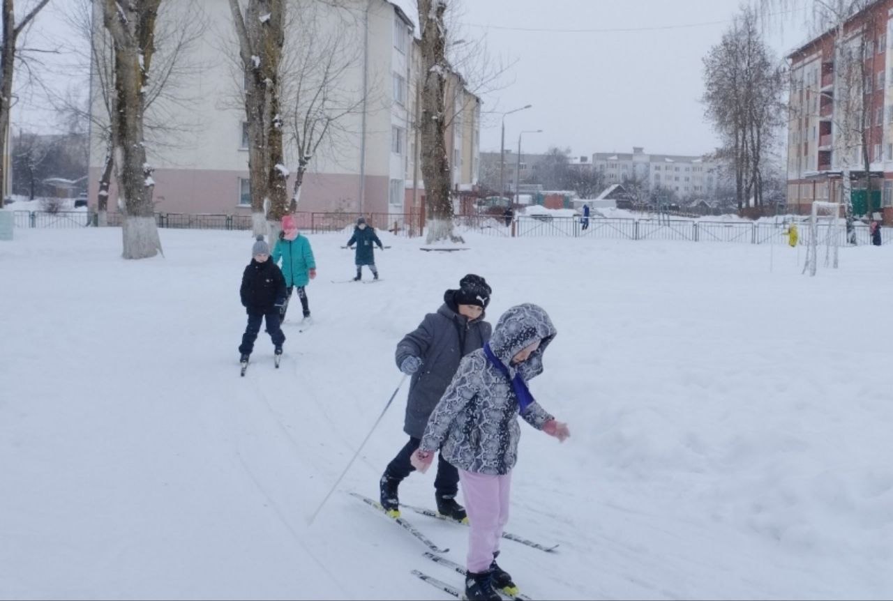 На школьном стадионе состоялись лыжные эстафеты с участием учащихся, педагогов и родителей «Лыжня-2026».
