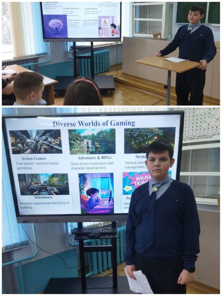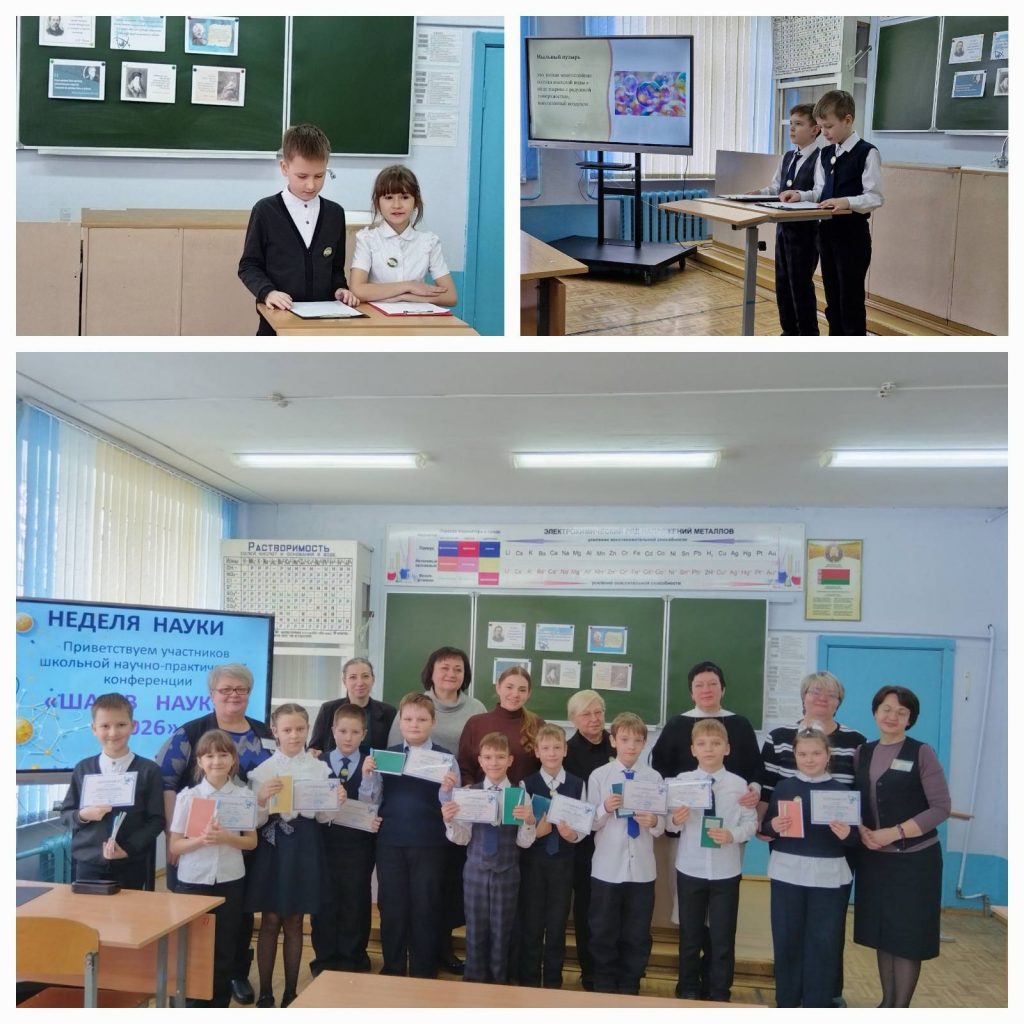 День второй. День наук был посвящён таинственному и увлекательному иностранному языку. Учащиеся Матусевич Варвара и Боровлёв Станислав посвятили своё исследование красному цвету в английской и белорусской культурах. Аверина Агата уделила внимание в своей работе важности переработки вторичного сырья и её пользе, также показала пример практического применения бумажных отходов. Актуальной и популярной темой для подростков являются онлайн-игры. Это и осветил Панив Марат в своём исследовании » Компьютерные игры: «За» и «Против»». Сытькова Марина представила на суд жюри работу на тему, актуальную для Беларуси в 2026 году. Исследование было посвящено женщинам малой родины — Жлобинщины, которые добились высоких результатов на своём поприще. Учащаяся 7 «Б» класса Селезнёва Алиса исследовала различные аспекты профессии «учитель». Сычевич Даниил обратился к исследованию удивительного мира слов, изучив полисемию, составив словарь-помощник из лексем, имеющих несколько значений в английском языке.