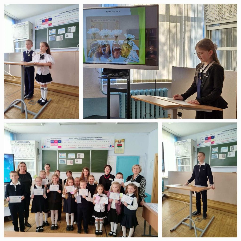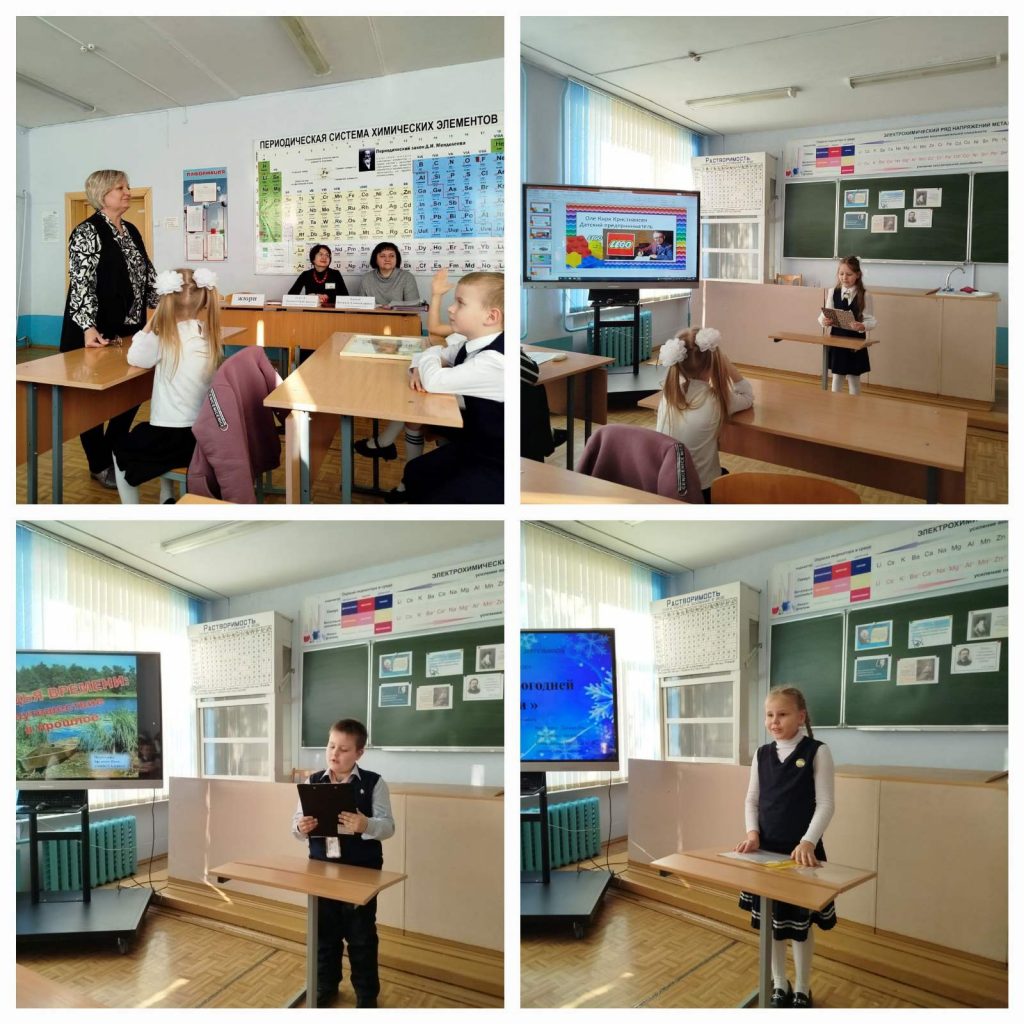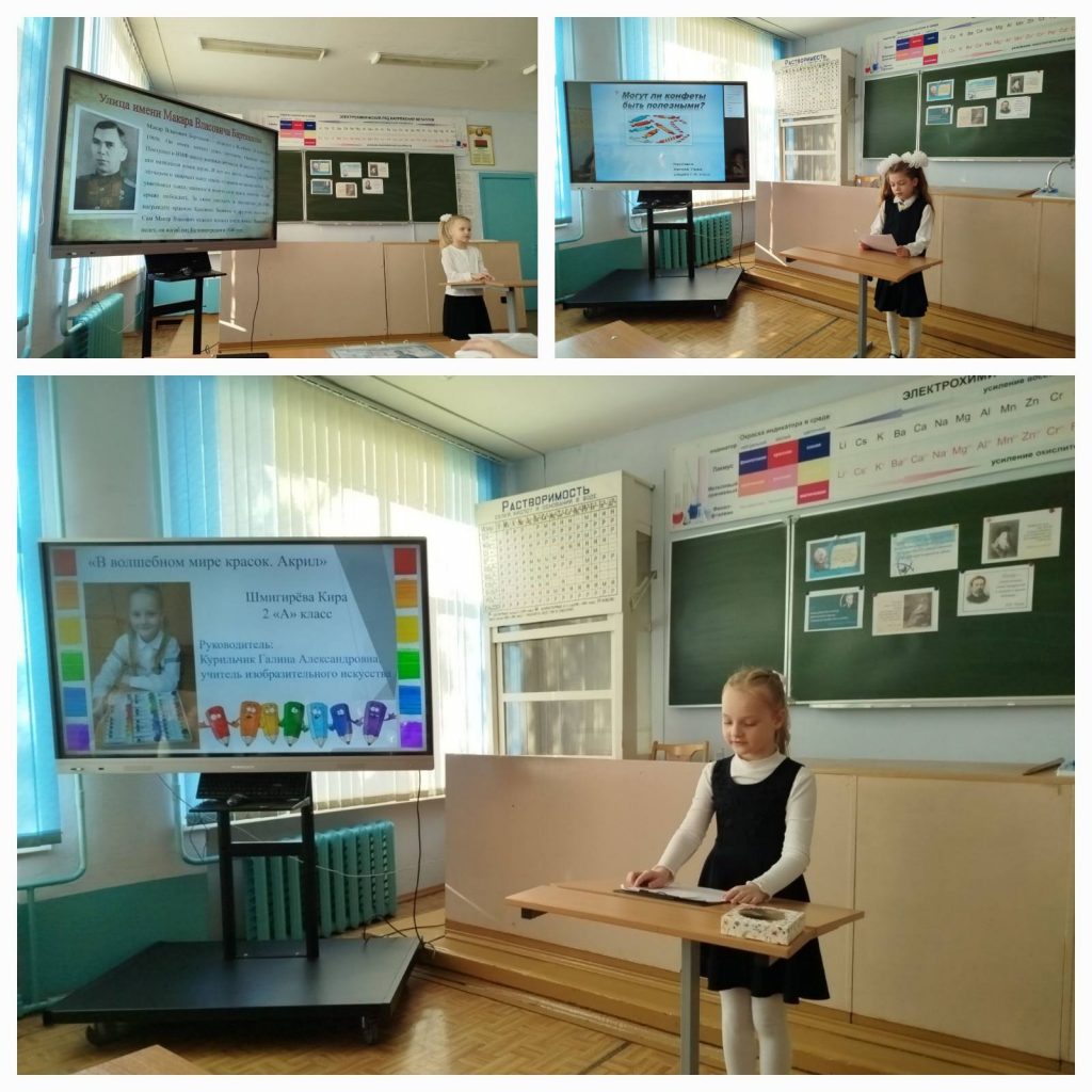 Учащиеся 3-4 классов приоткрыли тайны соды и сахара, поделились секретами создания чернил и безопасных освежителей, познакомили с историей жизни своих предков — участников ВОВ. Все выступления были интересными, познавательными и очень убедительными.