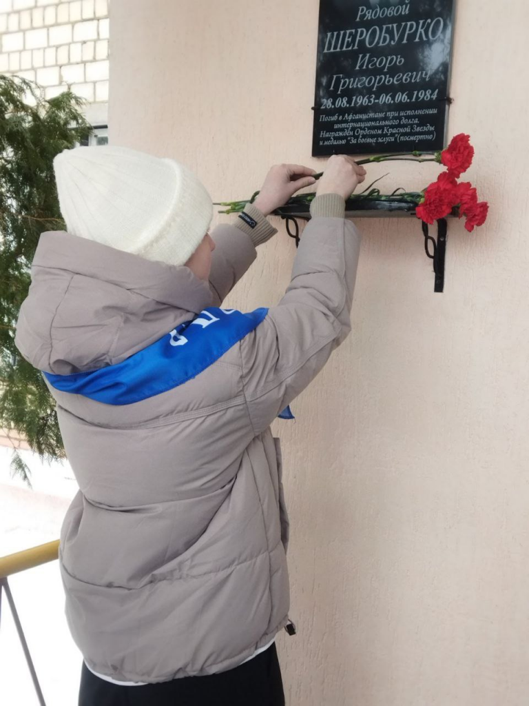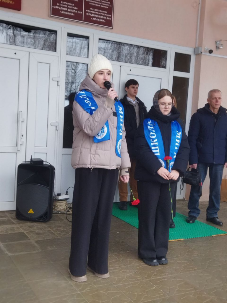 12 февраля в ГУО «Средняя школа №9 г. Жлобина» состоялся митинг-реквием у памятной доски воина-интернационалиста Игоря Шеробурко, выпускника школы.