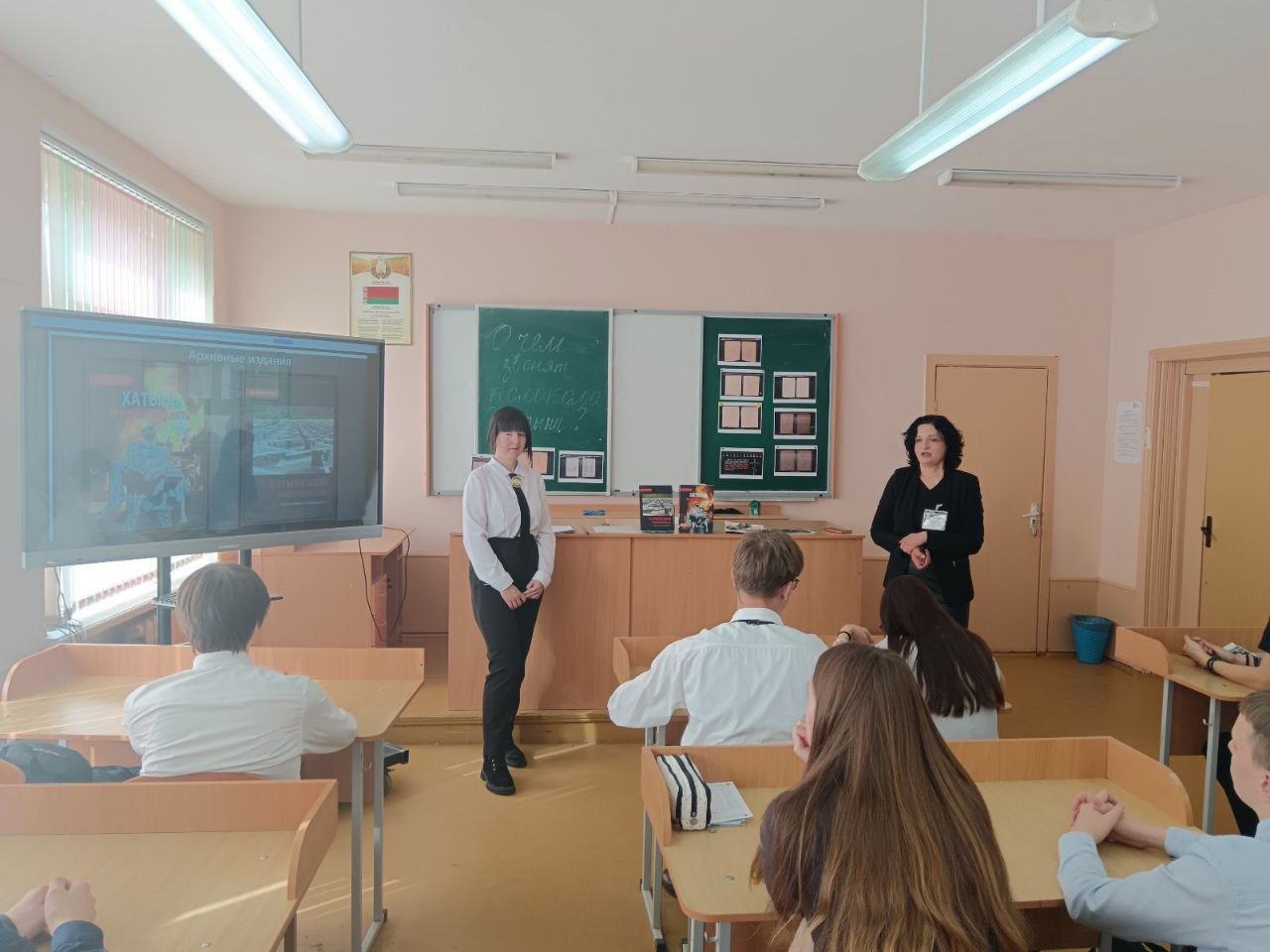 Сегодня на уроке «О чём звонят колокола Хатыни?» мы вместе окунулись в трагическую историю белорусской деревни — символа невосполнимых потерь и горя в годы Великой Отечественной войны. Учитель Пименова И.В. познакомила детей с трагическими фактами тех дней и историей создания мемориального комплекса. Архивист Елисеева И.Н. представила ученикам сборники архивных документов «Хатынский некрополь» и «Хатынь. Трагедия и память», выпущенные Национальным архивом Республики Беларусь в 2014 году, содержащие уникальные материалы о карательной операции, трагедии сожженных деревень и создании мемориального комплекса. Были прочитаны свидетельства выживших, отчеты карателей и воспоминания. Рассмотрели выразительные картины, посвящённые этой теме. Ученики посмотрели документальный фильм, созданный Белорусским архивом кинофотофонодокументов о событиях в Хатыни. Встреча завершилась минутой молчания. Память о Хатыни — наш святой долг. Только помня прошлое, мы сохраним мир для будущих поколений.